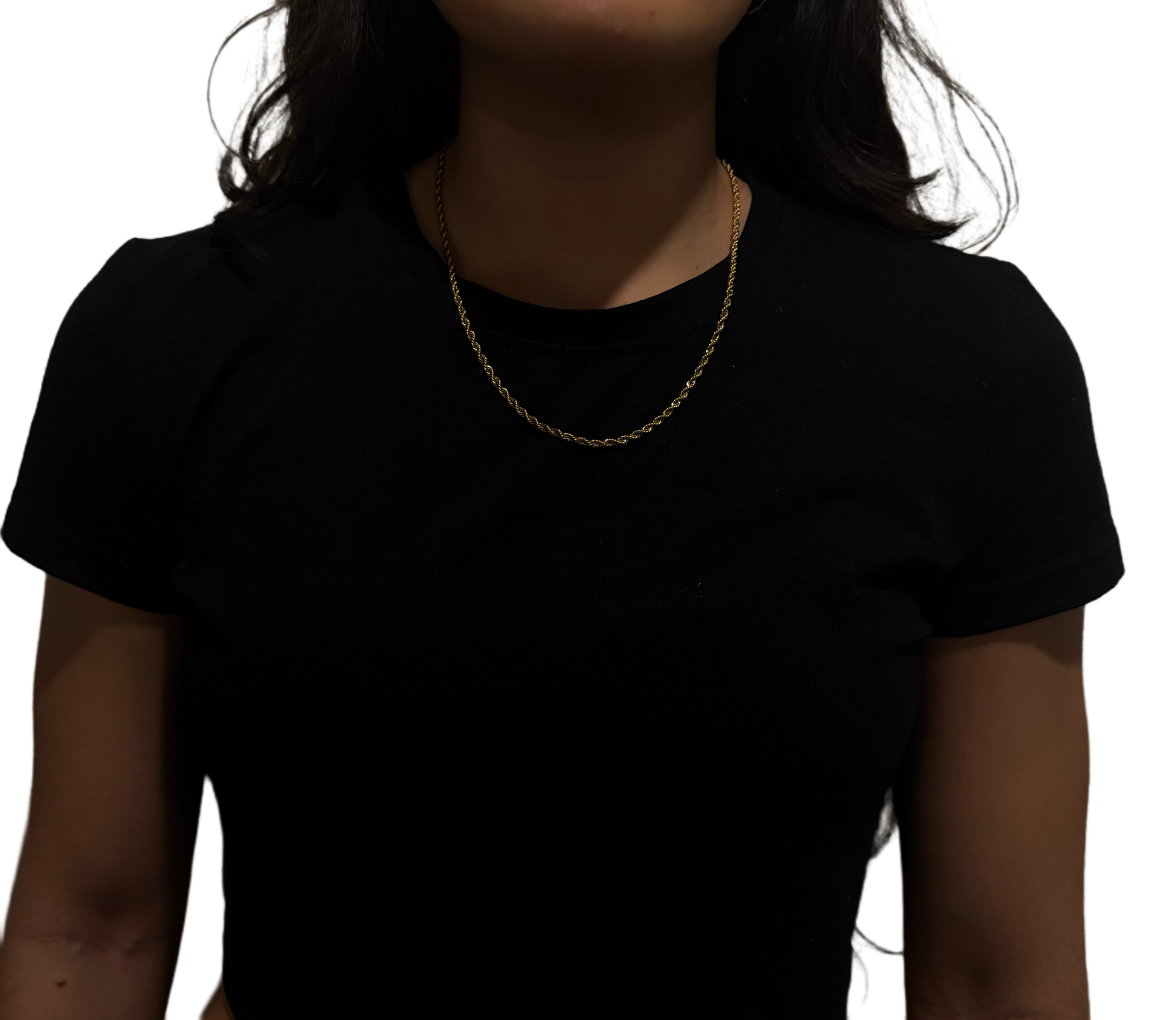A bold twist with a luxurious finish. This stainless steel rope chain doesn’t rust, fade, or flake. Thick enough to stand alone, clean enough to layer.
