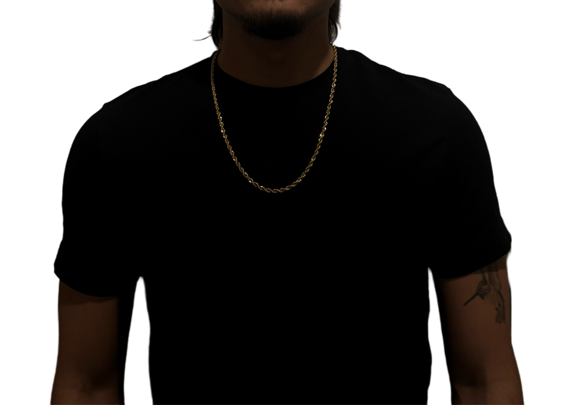 A bold twist with a luxurious finish. This stainless steel rope chain doesn’t rust, fade, or flake. Thick enough to stand alone, clean enough to layer.